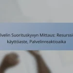 Yleisimmät suorituskykymittarit sisältävät vasteajan, joka mittaa, kuinka nopeasti järjestelmä reagoi käyttäjän pyyntöihin, sekä läpimenoajan, joka kertoo, kuinka monta pyyntöä järjestelmä pystyy käsittelemään tietyssä ajassa. Virheprosentti puolestaan paljastaa, kuinka usein järjestelmä epäonnistuu pyyntöjen käsittelyssä.