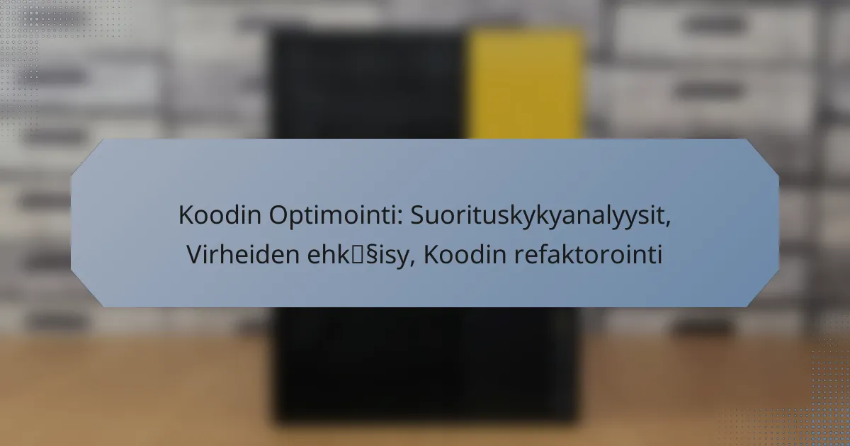 Koodin optimointi on olennainen osa ohjelmistokehitystä, joka keskittyy ohjelmiston suorituskyvyn parantamiseen eri menetelmillä, kuten suorituskykytestauksella, refaktoroinnilla ja virheiden ehkäisyllä. Nämä käytännöt auttavat kehittäjiä parantamaan koodin