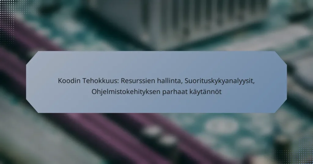 Koodin tehokkuus on olennainen osa ohjelmistokehitystä, ja se koostuu kolmesta keskeisestä tekijästä: resurssien käyttö, suorituskyky ja ylläpidettävyys. Näiden tekijöiden optimointi ei ainoastaan paranna ohjelmiston laatua ja käyttäjäkokemusta, vaan myös vähentää elinkaarikustannuksia. Tehokas resurssien käyttö varmistaa, että ohjelmat toimivat sujuvasti ja luotettavasti, mikä on tärkeää nykypäivän vaativissa ympäristöissä. Mitkä ovat koodin tehokkuuden keskeiset osatekijät? Koodin tehokkuuden keskeiset osatekijät ovat resurssien käyttö, suorituskyky ja ylläpidettävyys. Nämä tekijät vaikuttavat suoraan ohjelmistokehityksen laatuun ja käyttäjäkokemukseen, ja niiden optimointi voi vähentää elinkaarikustannuksia merkittävästi. Resurssien käytön…