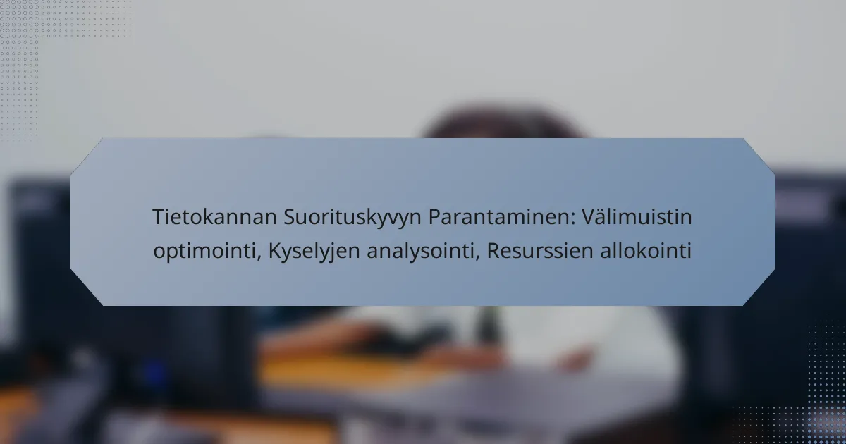 Tietokannan suorituskyvyn parantaminen edellyttää useiden tekijöiden huomioimista, kuten välimuistin optimointia, kyselyjen analysointia ja resurssien tehokasta allokointia. Tavoitteena on vähentää vasteaikoja ja parantaa kyselyjen suorituskykyä, mikä