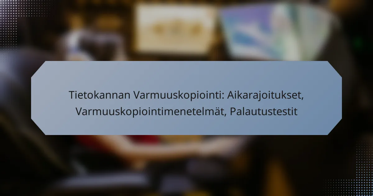 Tietokannan varmuuskopiointi on elintärkeä prosessi, joka varmistaa tietojen säilymisen ja palautettavuuden kriisitilanteissa. Aikarajoitukset, varmuuskopiointimenetelmät ja palautustestit ovat keskeisiä tekijöitä, jotka vaikuttavat varmuuskopiointistrategian tehokkuuteen ja järjestelmän