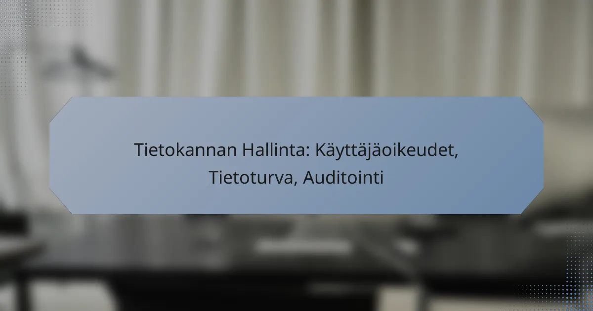 Tietokannan hallinta on olennainen osa organisaation tietoturvaa, keskittyen erityisesti käyttäjäoikeuksiin, tietoturvaan ja auditointiin. Näiden osa-alueiden asianmukainen hallinta takaa tietojen turvallisuuden ja eheyden, estäen luvattoman pääsyn